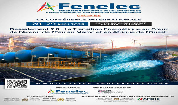 تعتزم الفيدرالية الوطنية للكهرباء والإلكترونيات والطاقات المتجددة “FENELEC” تنظيم مؤتمر “تحلية المياه 2.0 ” بمدينة أكادير يومي 28 و29 ماي 2025، وذلك في إطار إثراء النقاش وتقديم حلول ملموسة لمواجهة التحديات المتزايدة للأمن المائي والطاقي في المغرب ومنطقة دول غرب إفريقيا، من خلال تسليط الضوء على الإمكانيات الهائلة لتقنيات تحلية مياه البحر المعتمدة على الطاقات المتجددة.